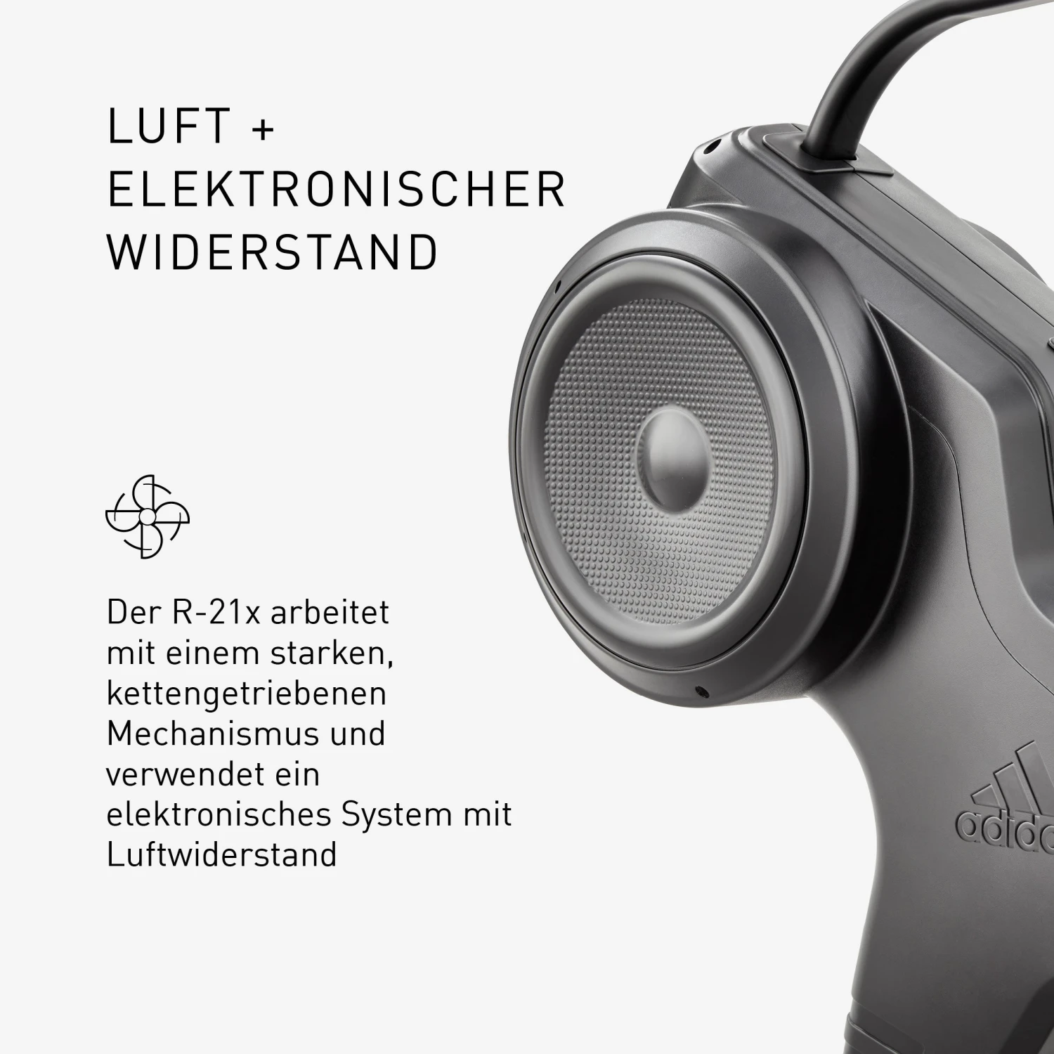 Das adidas R-21x Rudergerät Rower ist dein Schlüssel zu einem effektiven Ganzkörpertraining, das Ausdauer, Kraft und Koordination vereint. Rudern beansprucht nahezu alle Hauptmuskelgruppen, stärkt deinen Ober- und Unterkörper und trainiert gleichzeitig deine Rumpfmuskulatur. Mit seinen 16 Widerstandsstufen, innovativen Technologien wie der Kinomap-Kompatibilität und 12 vorinstallierten Trainingsprogrammen passt sich das R-21x perfekt an deine Fitnessziele an – egal, ob du deine Ausdauer verbessern, Muskeln stärken oder einfach Kalorien verbrennen möchtest. Komfort, intuitive Bedienung und hochwertige Verarbeitung machen dieses Rudergerät zum idealen Trainingspartner für dein Homegym.