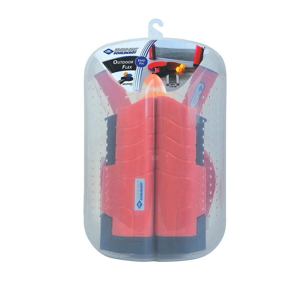 Tischtennis-Set bestehend aus 2 extrem langlebigen und robusten Kunststoffschläger, 2 orangenen Tischtennisbällen und einem Tischtennisnetz. Das ausziehbarem Nylon-Tischtennisnetz, passt auf fast alle Tische (auch Küchentisch, Bürotisch, … bis 175cm Breite, maximale Plattenstärke 4,5 cm). Hierdurch ist das Donic-Schildkröt Tischtennis-Set Outdoor FLEX ideal für zuhause, den Garten oder auch auf Reisen!