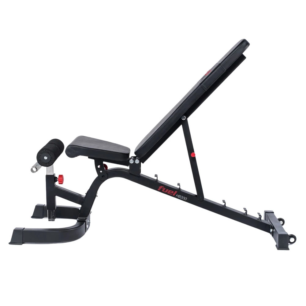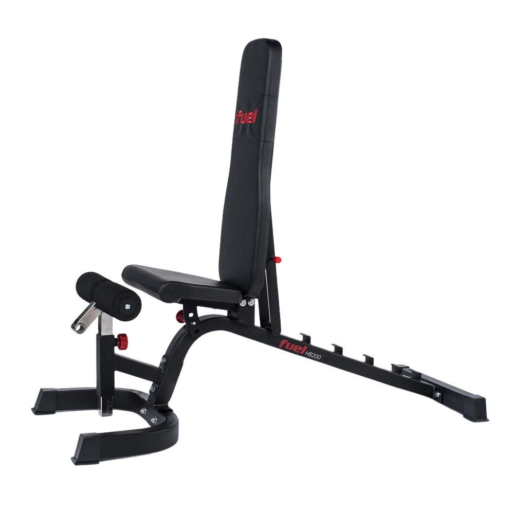 Die mehrfach verstellbare Hantelbank HB200 ist ideal für ein umfassendes Hanteltraining mit den Langhanteln oder Kurzhanteln. Der Sitz und die Rückenlehne sind mehrfach verstellbar und die HB200 ist so als Negativbank, Flachbank und Schrägbank nutzbar. Die FUEL Fitness Trainingsbank HB200 ist bis zu 272 kg belastbar – perfekt für ein Maximalkrafttraining mit hohen Gewichten.