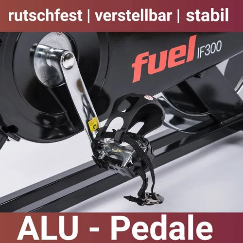 Das FUEL Fitness IF300 ist ein Indoor Cycle der alten Schule: stabil, ergonomische Sitzhaltung, großes Schwungrad, Kettenantrieb. Bewusst wird hier der Fokus auf das Wesentliche gerichtet: gleichmäßiger Rundlauf, hohe Qualität, gute Einstellmöglichkeit der Sitzposition und Fahrspaß pur.