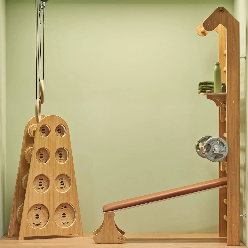 Heimholz hat sich auf Produkte aus Holz spezialisiert. Neben Fitnessgeräten wie der Sprossenwand und Holz-Hanteln bietet Heimholz auch Erweiterungen für das Homeoffice und Kinder-Spielzimmer.