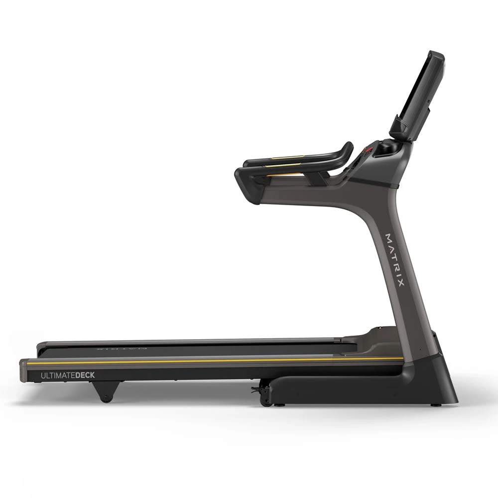 Das Matrix Laufband TF50 ist das ultimative Laufband für Laufanfänger und erfahrene Läufer. Von der Verknüpfung der Trainingsdaten zu zahlreichen Fitness Apps bis hin zu der Nutzung von verschiedenen Unterhaltungs- Apps- auf dem Matrix Laufband TF50 erfüllt jeder seine Trainingsbedürfnisse. Die gesamte Familie kann zwischen drei kompatiblen Trainingscomputern für Ihr Matrix Laufband TF50 Ihren Favoriten auswählen. Dank seinem geräuscharmen Antrieb über das Johnson Drive System, müssen Sie das Laufband nicht in den Keller verfrachten. Sie können ohne jegliche Beschwerden der Familie oder Nachbarn in einem Raum Ihrer Wahl Ihr Lauftraining absolvieren. Haben Sie Platzprobleme? Auch dafür hat das Matrix Laufband TF50 eine Lösung. Nach dem Lauftraining lässt sich das Matrix Laufband TF50 problemlos zusammenklappen und über die Transportrollen in jede Ecke schieben.