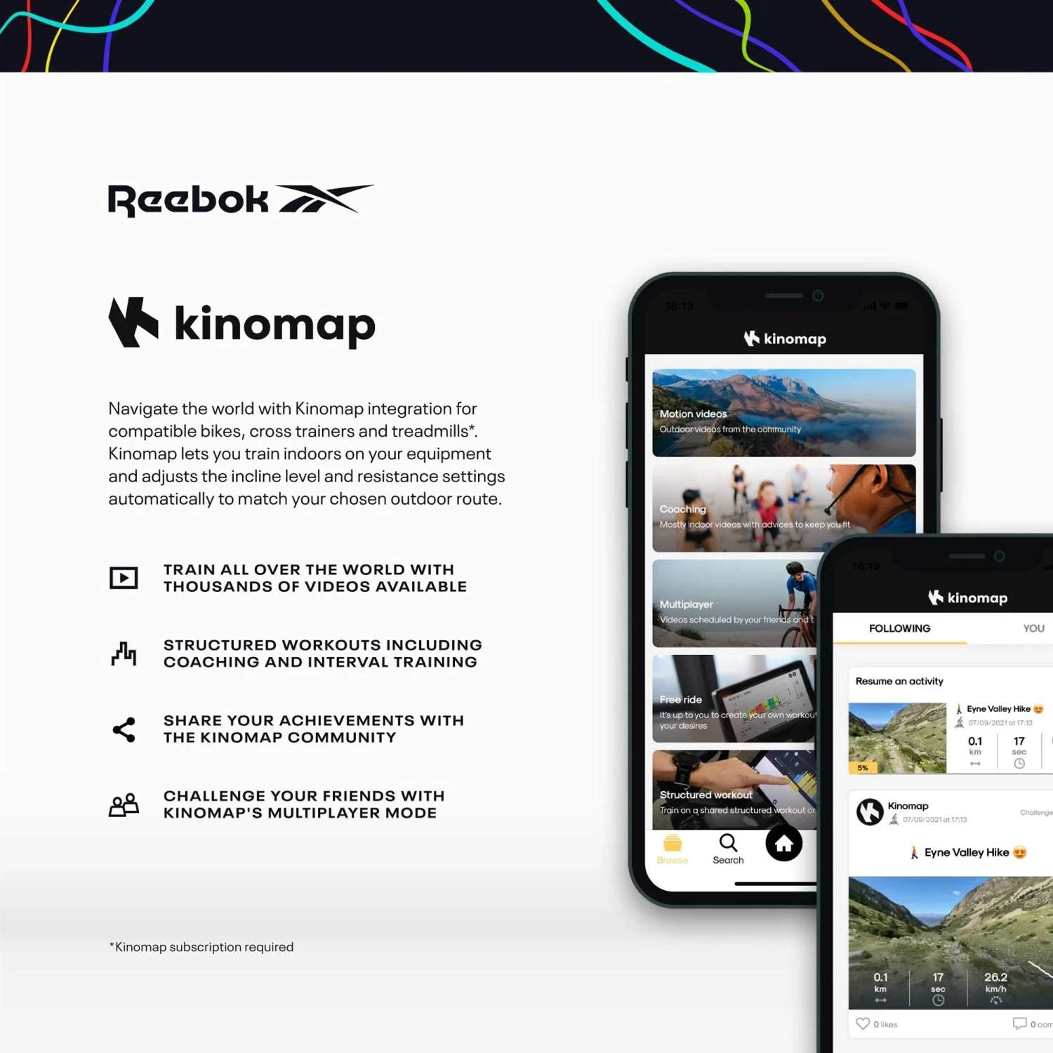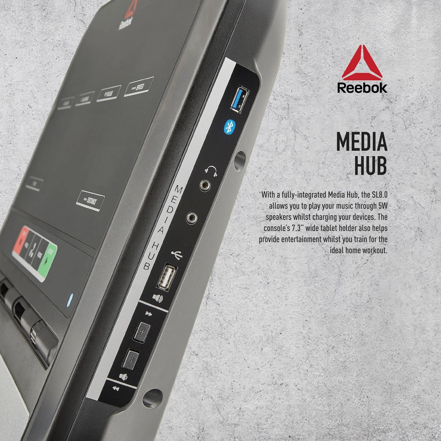 Erreiche Höchstleistungen mit deinem Indoor-Lauftraining auf dem Reebok SL8.0 Laufband. Um deine Fortschritte zu maximieren, bietet das SL8.0 Bluetooth-Konnektivität, mit der du mit den Kinomap- und Reebok Fitness Equipment-Apps trainieren kannst. Verfolge, plane und analysiere dein Training und erkunde die Welt von zu Hause aus. Laufe tausende von Video-Strecken weltweit ab.