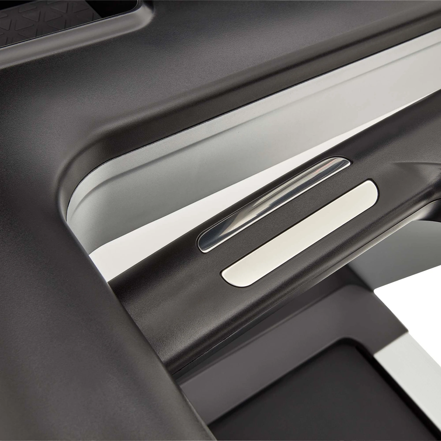 Überwache deinen Run auf dem 6-Fenster-LED-Display. 31 Workouts sorgen für Abwechslung und Motivation. Für Entertainment nutze den verstellbaren Tablet-Halter, den Media-Hub mit AUX- und Kopfhöreranschlüssen sowie das integrierte 5-Watt-Bluetooth-Lautsprechersystem.