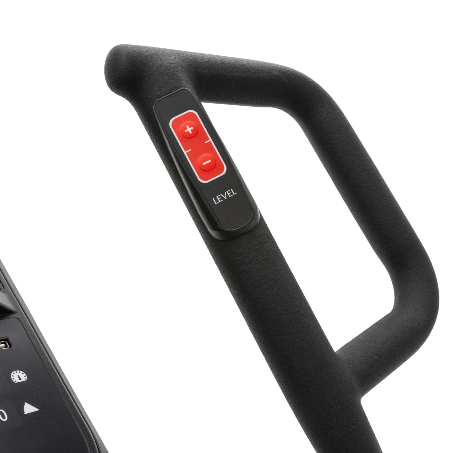Der Spirit Fitness Crosstrainer XE395 ENT Black bietet dir alles, was du für ein effektives und komfortables Training brauchst. Mit dem 10,1-Zoll-Touchscreen-Display hast du über kompatible Trainings-Apps Zugriff auf über 3000 Workouts, während die 20-stufige elektronische Steigungseinstellung und das gelenkschonende Doppelschienensystem für ein individuell anpassbares, intensives Training sorgen. Dank der Konnektivität mit Garmin, Kinomap und der Spirit Fitness App wird dein Workout nicht nur effizient, sondern auch unterhaltsam und motivierend.