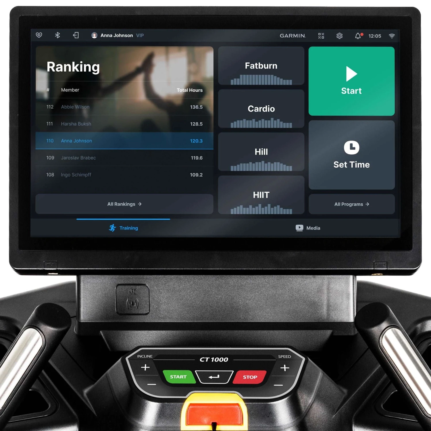 Das Spirit Fitness CT1000 ENT Studio-Laufband ist die perfekte Wahl für professionelle Fitnessstudios, Firmen-Gyms, Hotel-Fitnessräume und den ambitionierten Vereins- oder Profisport. Mit einem leistungsstarken 5.0-PS-AC-Motor, einer extra großen Lauffläche von 157,5 x 56 cm und einem hochmodernen 54,6 cm (21,5″) HD-Touchscreen kombiniert es maximale Performance mit innovativer Technologie. Dank der robusten Stahlkonstruktion (max. Benutzergewicht: 205 (!) kg), der gelenkschonenden Dämpfung und der intuitiven Bedienung bietet das Laufband höchsten Trainingskomfort und ist selbst für den intensiven Dauerbetrieb ausgelegt.